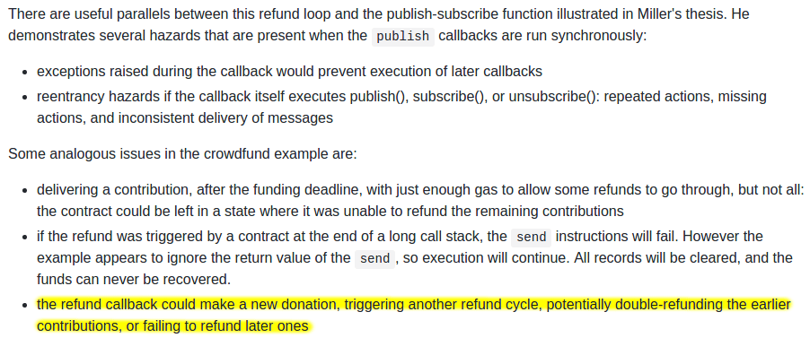 Second, a discussion between him and myself (during a walk in San Francisco, so the exact details will be forever lost to the winds of history and possibly a copy or two in the deep archives of the NSA) led to a re-factoring of the transaction fee model, moving away from the "contract pays" approach to a "sender pays" approach, and also switching to the "gas" architecture. Instead of each individual transaction step immediately taking away a bit of ether, the transaction sender pays for and is allocated some "gas" (roughly, a counter of computational steps), and computational steps drew from this allowance of gas. If a transaction runs out of gas, the gas would still be forfeit, but the entire execution would be reverted; this seemed like the safest thing to do, as it removed an entire class of "partial execution" attacks that contracts previously had to worry about. When a transaction execution finishes, the fee for any unused gas is refunded.