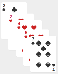 Example of a full five-card winning hand. y = 4x + 5.