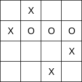 Mathematically, the board can be interpreted as a 2-dimensional vector space over integers modulo 4, and the goal being to fill in a line that passes through four points over this space. Note that there exists at least one line passing through any two points.