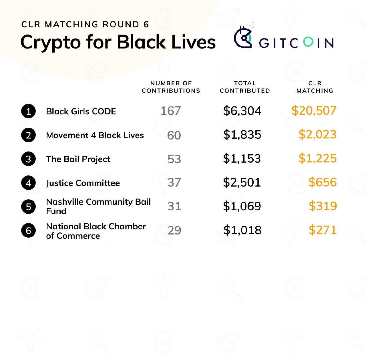and the round-6-special category Crypto For Black Lives.