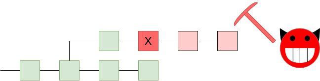 A 51% attack pushing through an invalid block. We want the network to reject the chain!