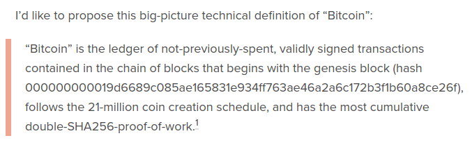 Here is one example of the "by definition" perspective from Gavin Andresen: