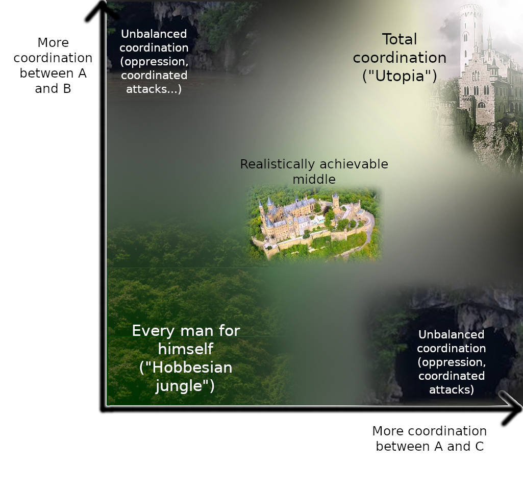 But there is also a very philosophically counterintuitive dark side to coordination. While it is emphatically true that "everyone coordinating with everyone" leads to much better outcomes than "every man for himself", what that does NOT imply is that each individual step toward more coordination is necessarily beneficial. If coordination is improved in an unbalanced way, the results can easily be harmful.