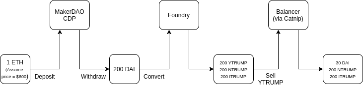 There were other technical complexities too, though fortunately they all seem to be easily solvable. There is no reason why an interface like Catnip could not integrate the "DAI -> Foundry -> sell YTRUMP" path into a contract so that you could buy NTRUMP that way in a single transaction. In fact, the interface could even check the price and liquidity properties of the "DAI -> NTRUMP" path and the "DAI -> Foundry -> sell YTRUMP" path and give you the better trade automatically. Even withdrawing DAI from a MakerDAO CDP can be included in that path. My conclusion here is optimistic: technical complexity issues were a real barrier to participation this round, but things will be much easier in future rounds as technology improves.