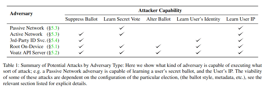 The hacks were pretty serious. Here is a table of the attack capabilities that researchers analyzing Voatz managed to uncover: