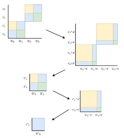 This is using the \(C' = \alpha C + \alpha^2 L + R\) version we mentioned above. The ability to directly compute \(G^*_0\) as a linear combination already cuts down our work to \(O(\frac{n}{log(n)})\) due to fast linear combination algorithms, but we can go further.