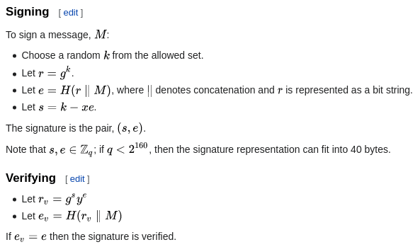 Now, consider Schnorr signatures. Schnorr signatures rely only on basic elliptic curves. But the signing and verification logic is somewhat more complex: