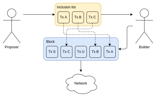 That said, I do think that we can go even further. Historically, inclusion lists have often been conceived as an "off-to-the-side special-case feature": normally, you would not think about them, but just in case malicious builders start doing crazy things, they give you a "second path". This attitude is reflected in current design decisions: in the current EIP, the gas limit of an inclusion list is around 2.1 million. But we can make a philosophical shift in how we think about inclusion lists: think of the inclusion list as being the block, and think of the builder's role as being an off-to-the-side function of adding a few transactions to collect MEV. What if it's builders that have the 2.1 million gas limit?