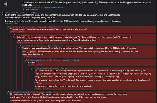 Even relatively mild pro-big-block posts would frequently get deleted. Custom CSS was used to make these deleted posts invisible.