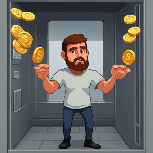 "Someone in a prison cell juggling gold coins", locally-running