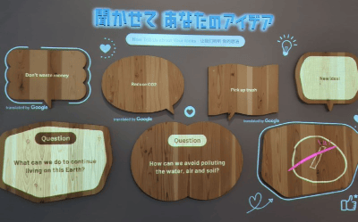 The Miraikan does not have anything like this. There is an exhibit that deals with the important environmental problems facing the earth, but its tone toward the problem is much more conventional: these problems are the fault of human beings, we need to be mindful and find ways to have a smaller footprint. There are multiple exhibits that deal with improving the lives of people who do not have good (or functioning at all) eyesight or hearing. But their proposed solutions are mostly tweaks that try to make the world more gentle and friendly to people suffering from these conditions: robots that can help guide people, writing on business cards in Braille, and the like. These are really valuable things that can improve the lives of many people. But they are not what I would expect to see in a museum of the future in 2024: a solution that lets people actually see and hear again, such as optic nerve regeneration and brain computer interfaces.